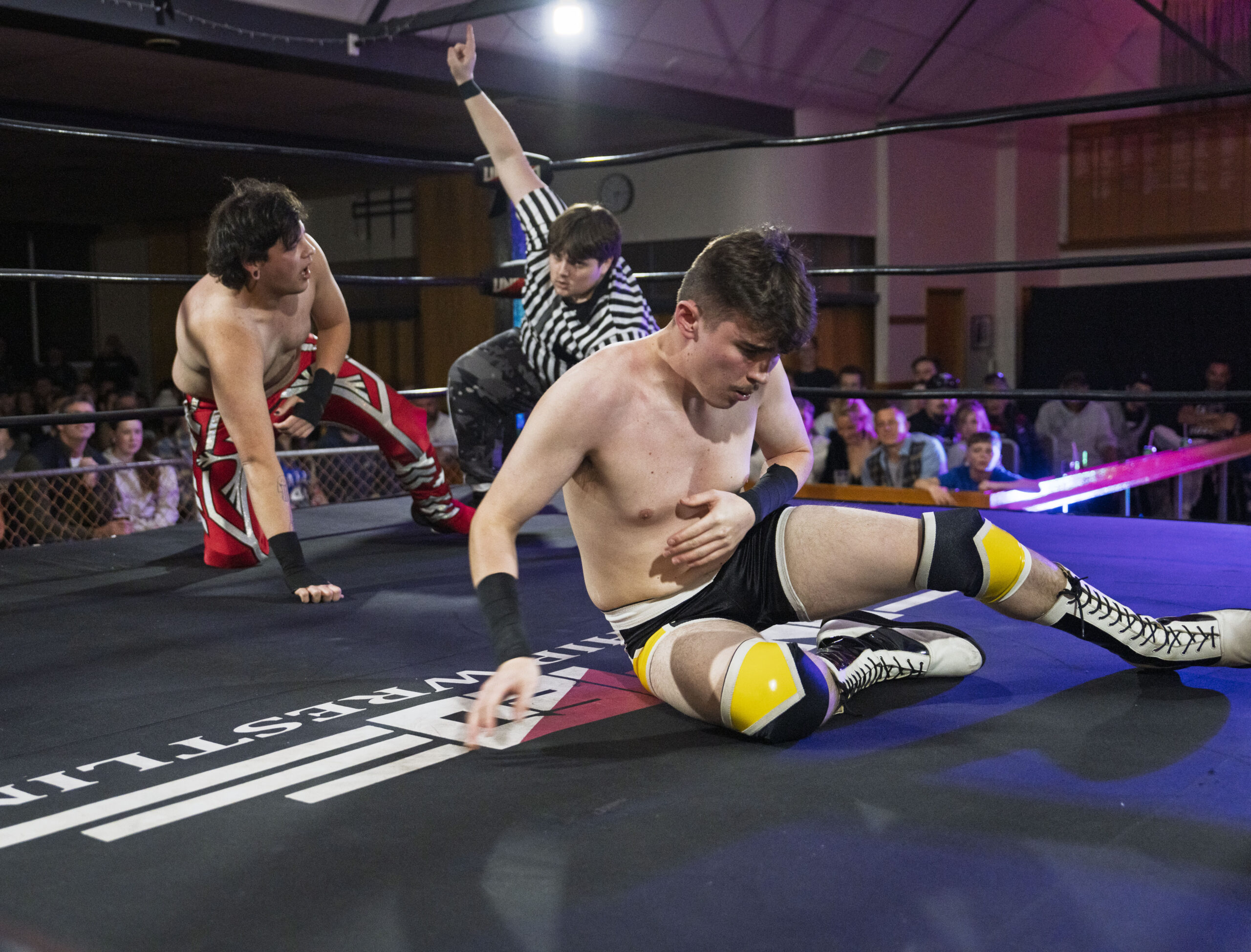 After rushing out to defend his training partner and mentor from further punishment, the debuting Jimi Conway failed to topple Rhys Gibson in a fast paced match up that certainly impressed the Kaiapoi crowd